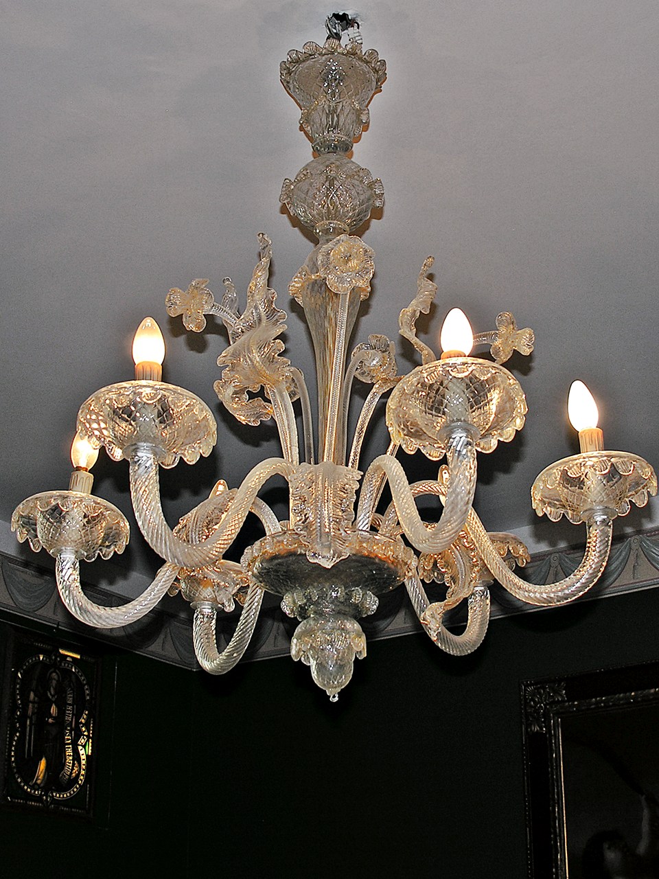 Żyrandol elektryczny, sześcio-ramienny w stylu Murano