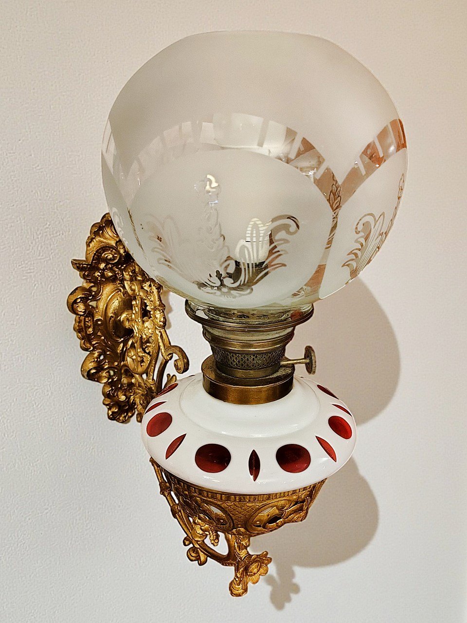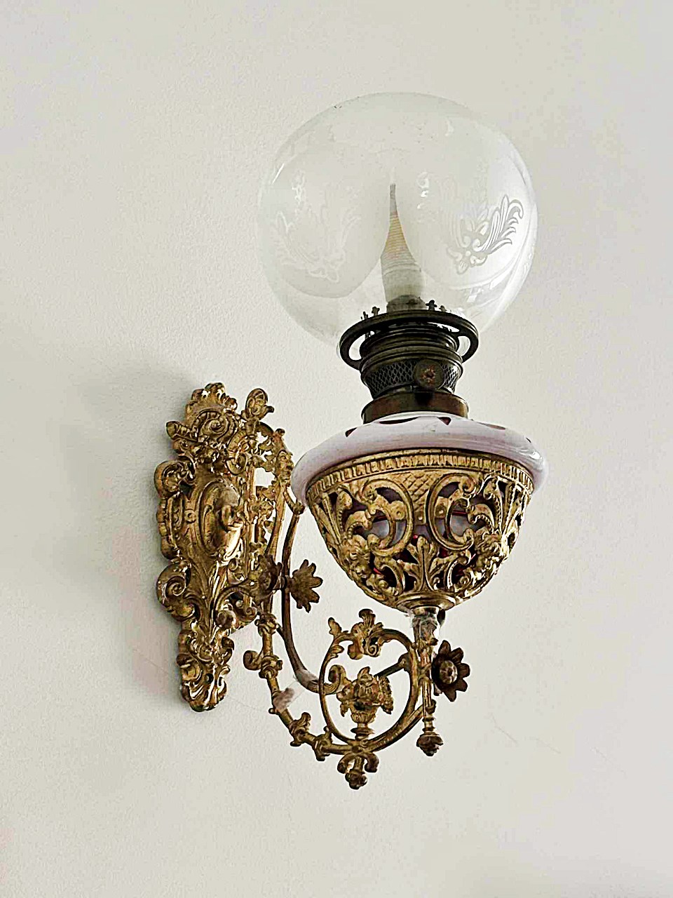 Kinkiet naftowy, adaptowany na elektryczny, pocz. XX w.